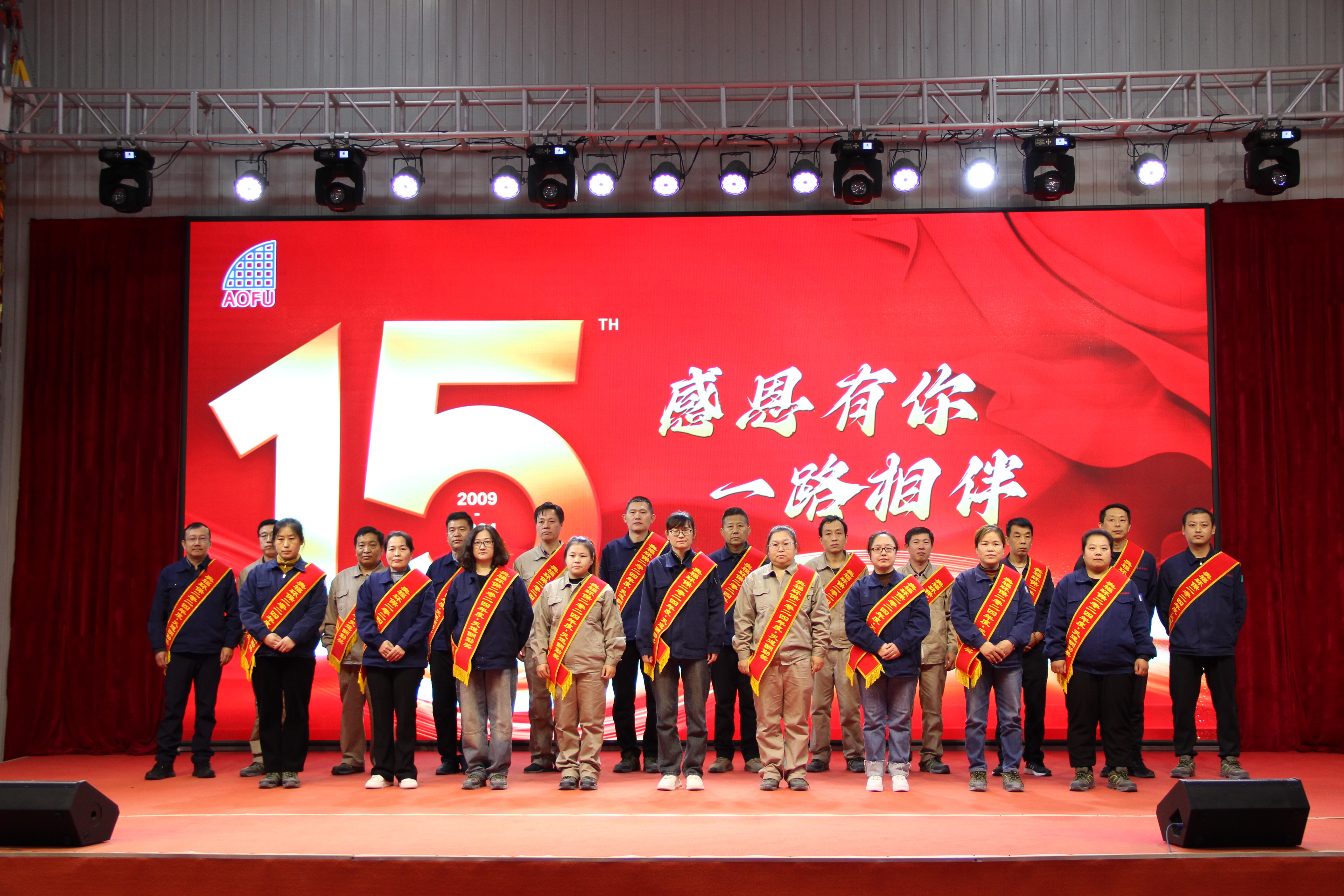 活动现场,公司管理层代表公司给在奥福工作满十年的员工颁发“天道酬勤”奖牌、荣誉证书及现金红包。
