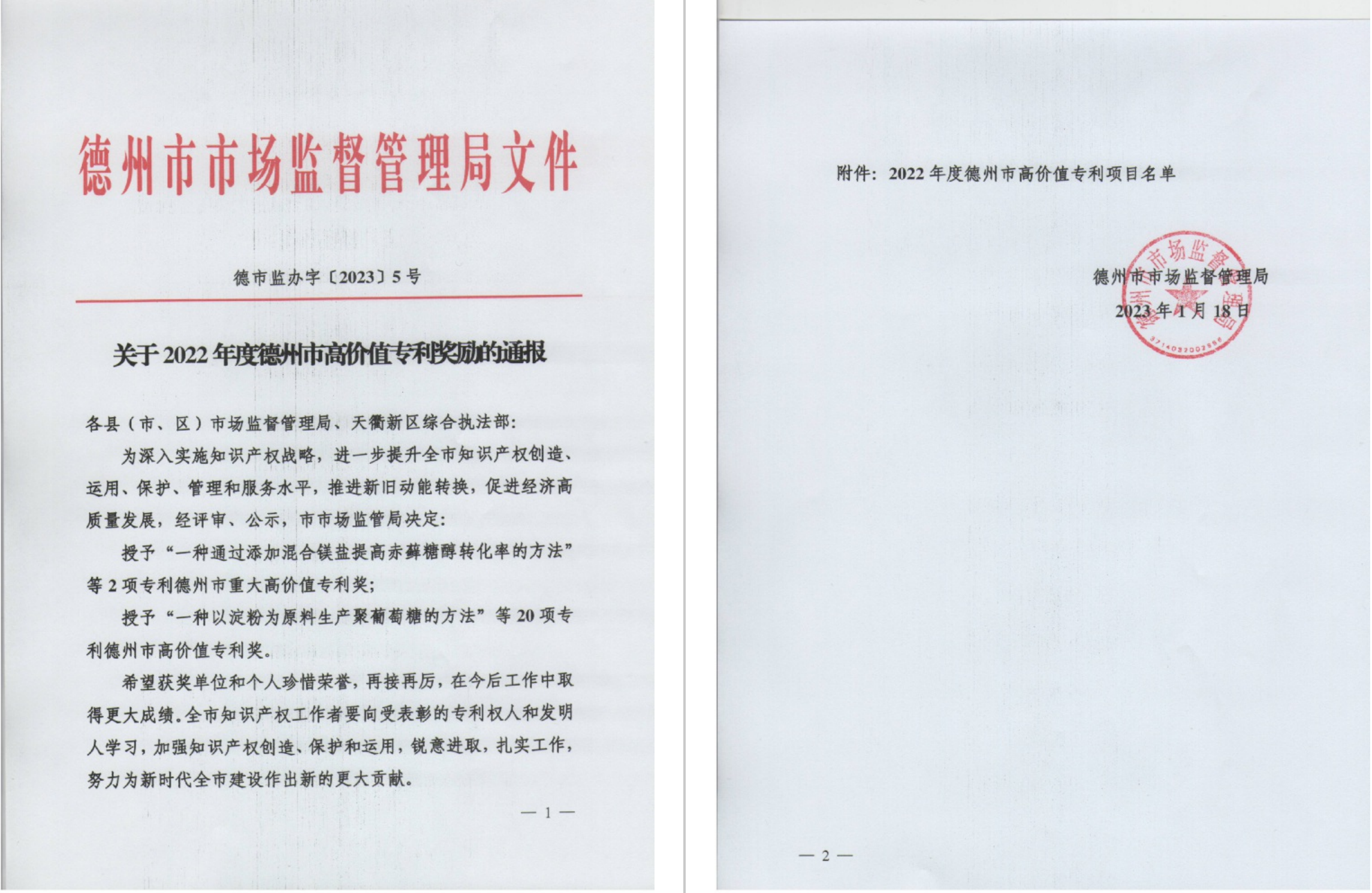 近期,我司被认定为2022年度国家知识产权优势企业,同时被授予2022年度德州市高价值专利奖。高价值专利是我司重要的无形资产,对我司提升核心竞争能力,领先行业发展,赢得市场效益具有重要的战略意义。